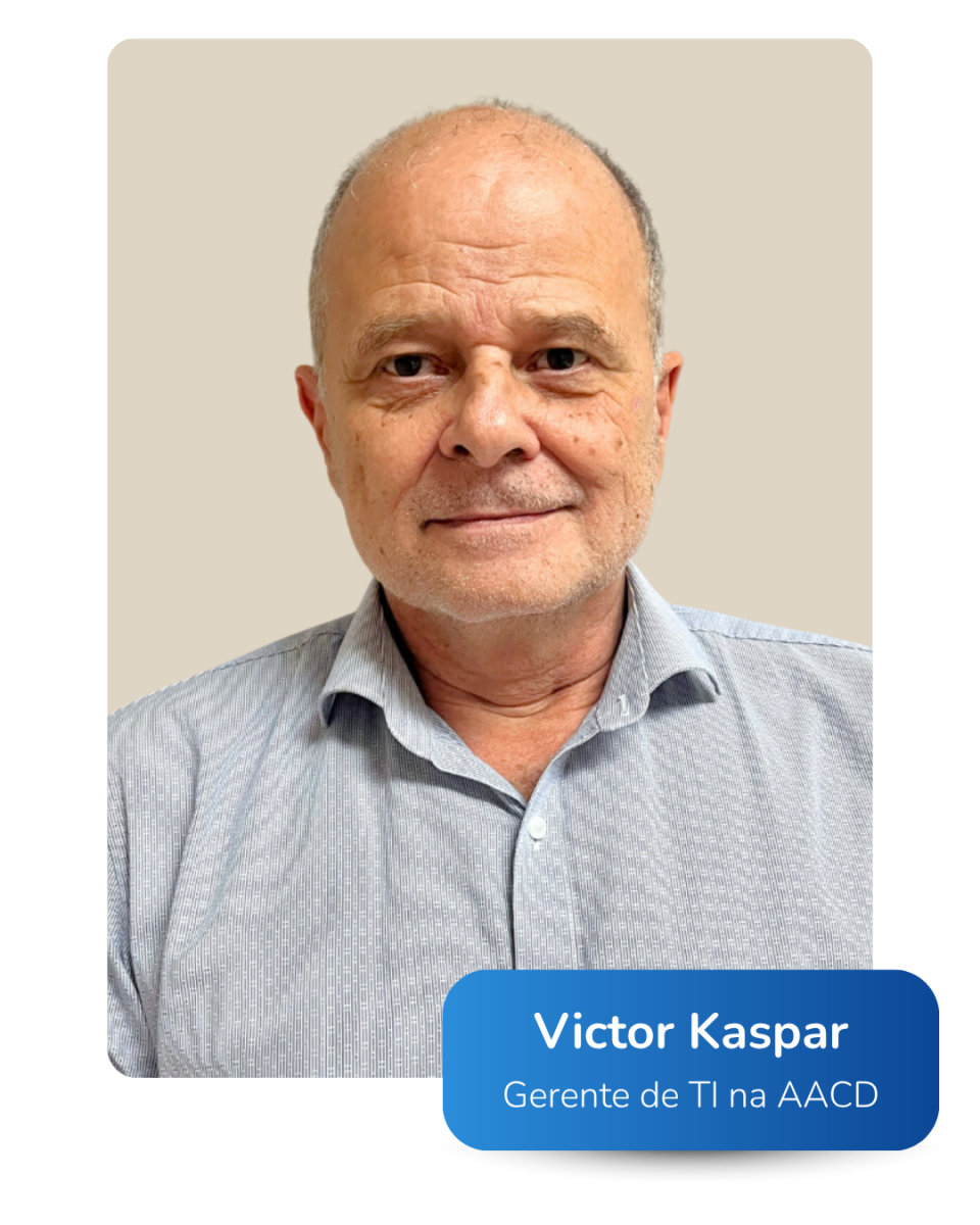 Victor Kaspar, Gerente de TI da AACD, avalia que “a qualidade do serviço e da expertise do Time da Exímio, combinado com postura proativa na detecção e resolução de problemas, trouxe ganhos expressivos na administração e gestão do Sistema Tasy para a AACD.”